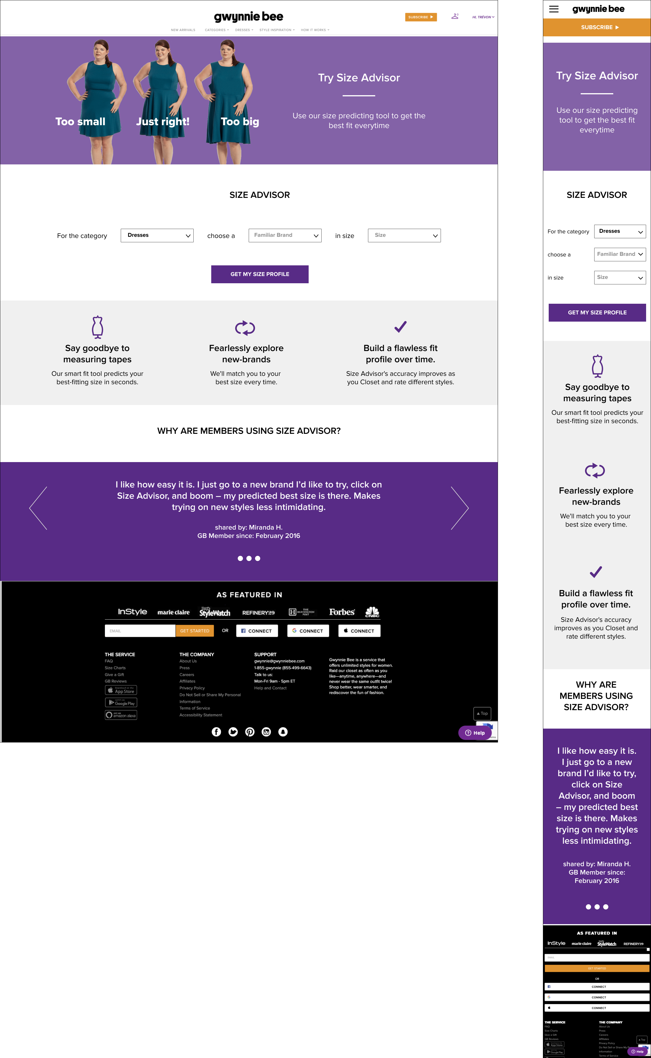 Size consistency across brands has always been a challenge. Gwynnie Bee’s Size Advisor was built to solve that problem with machine learning, but the original version was buried deep in the shopping flow and underused.